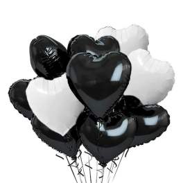 Price: $85.00 Blask and white 18in Hearts Balloon Bouquet (12 Balloons) Product Tags: Same-day Delivery